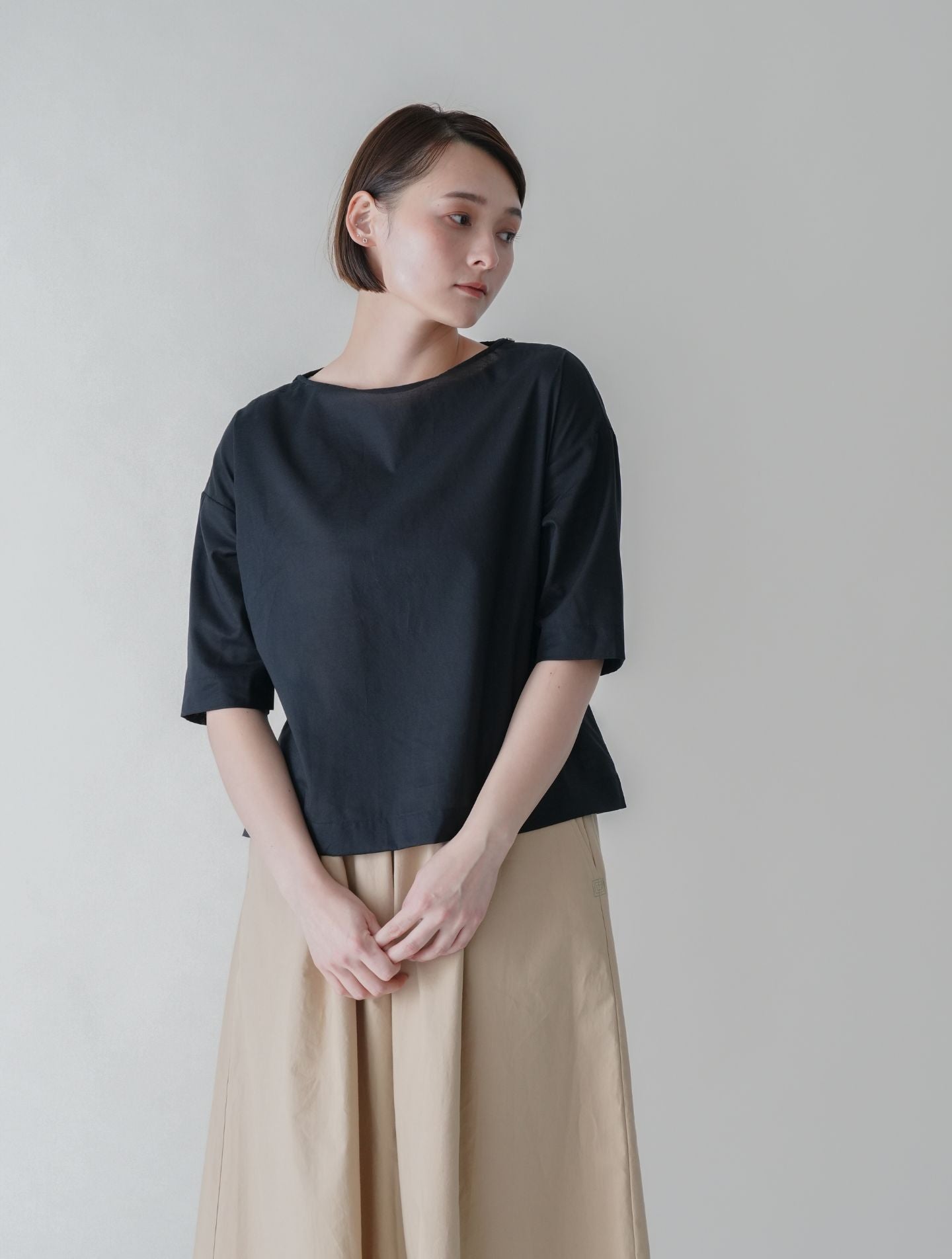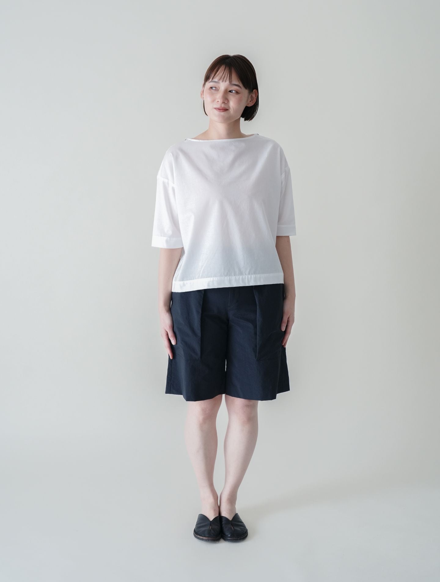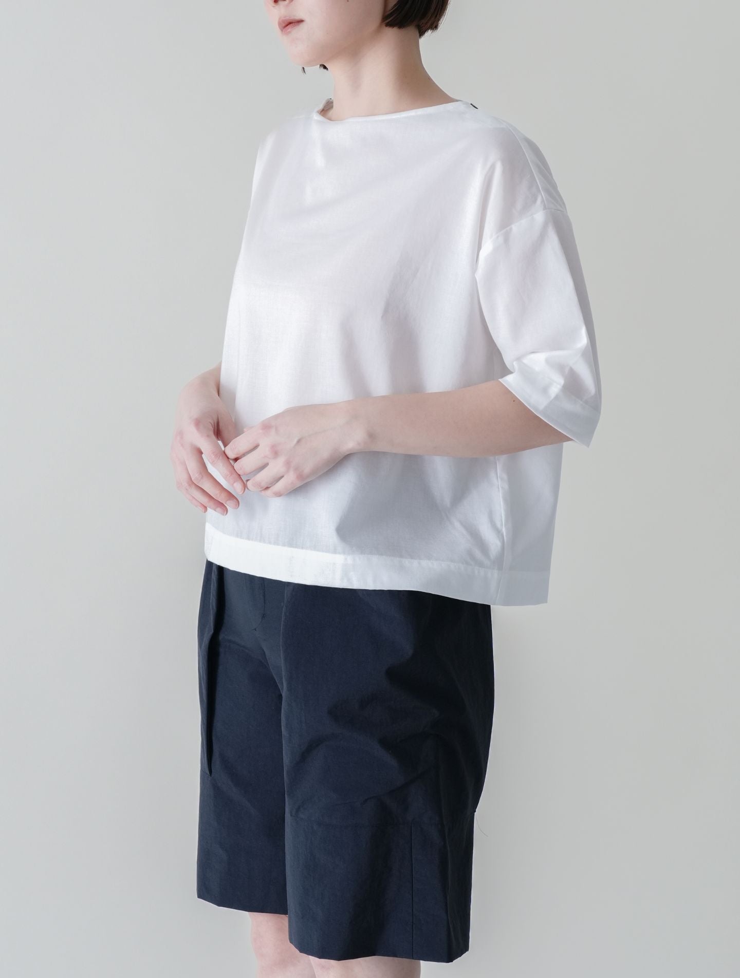 ハウェラ │ 綿ローン 5分袖ボートネック プルオーバーブラウス