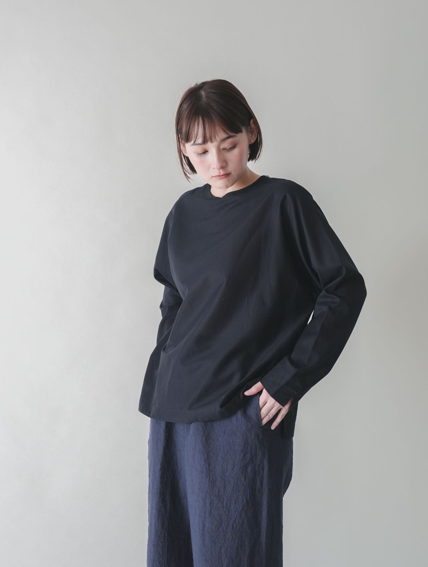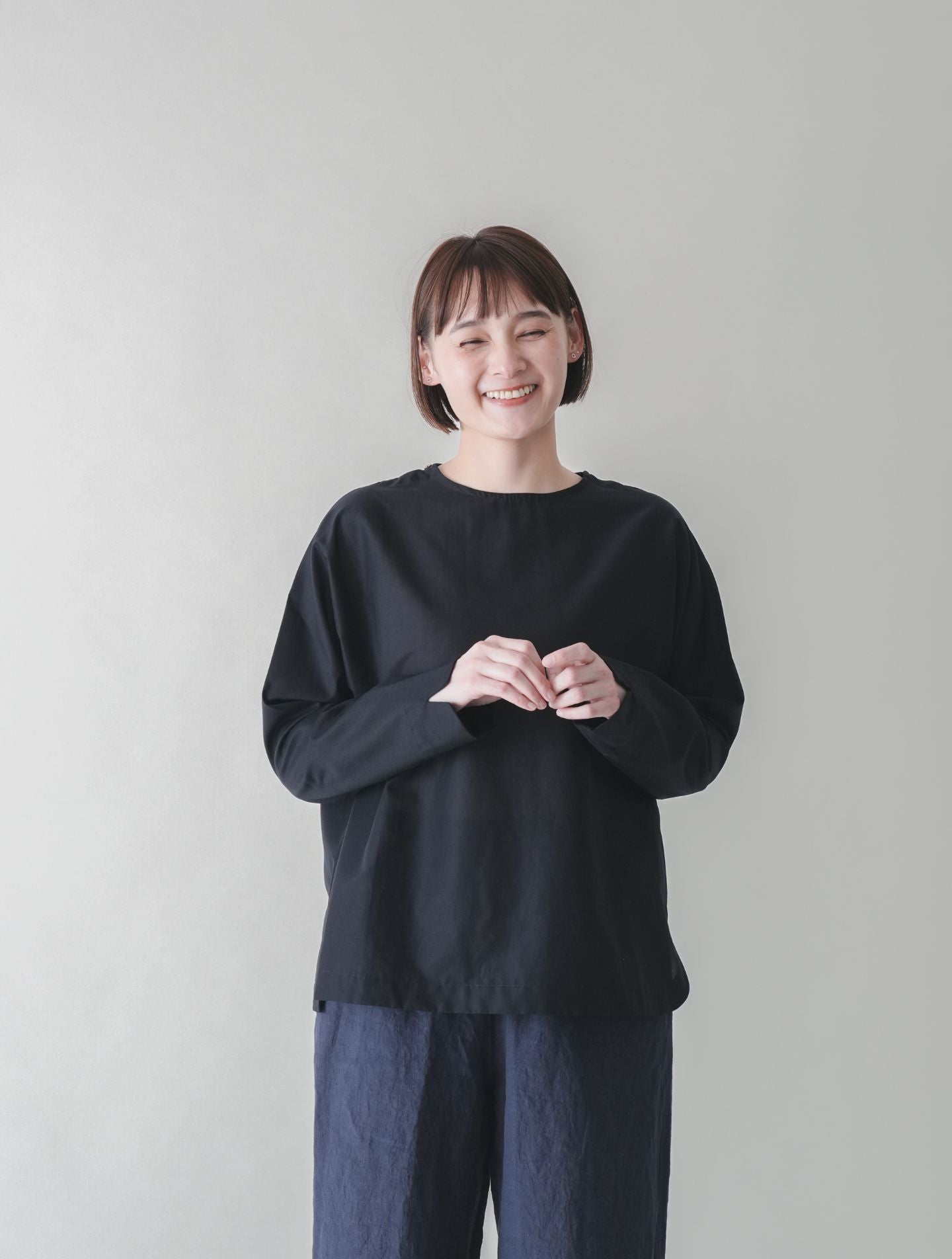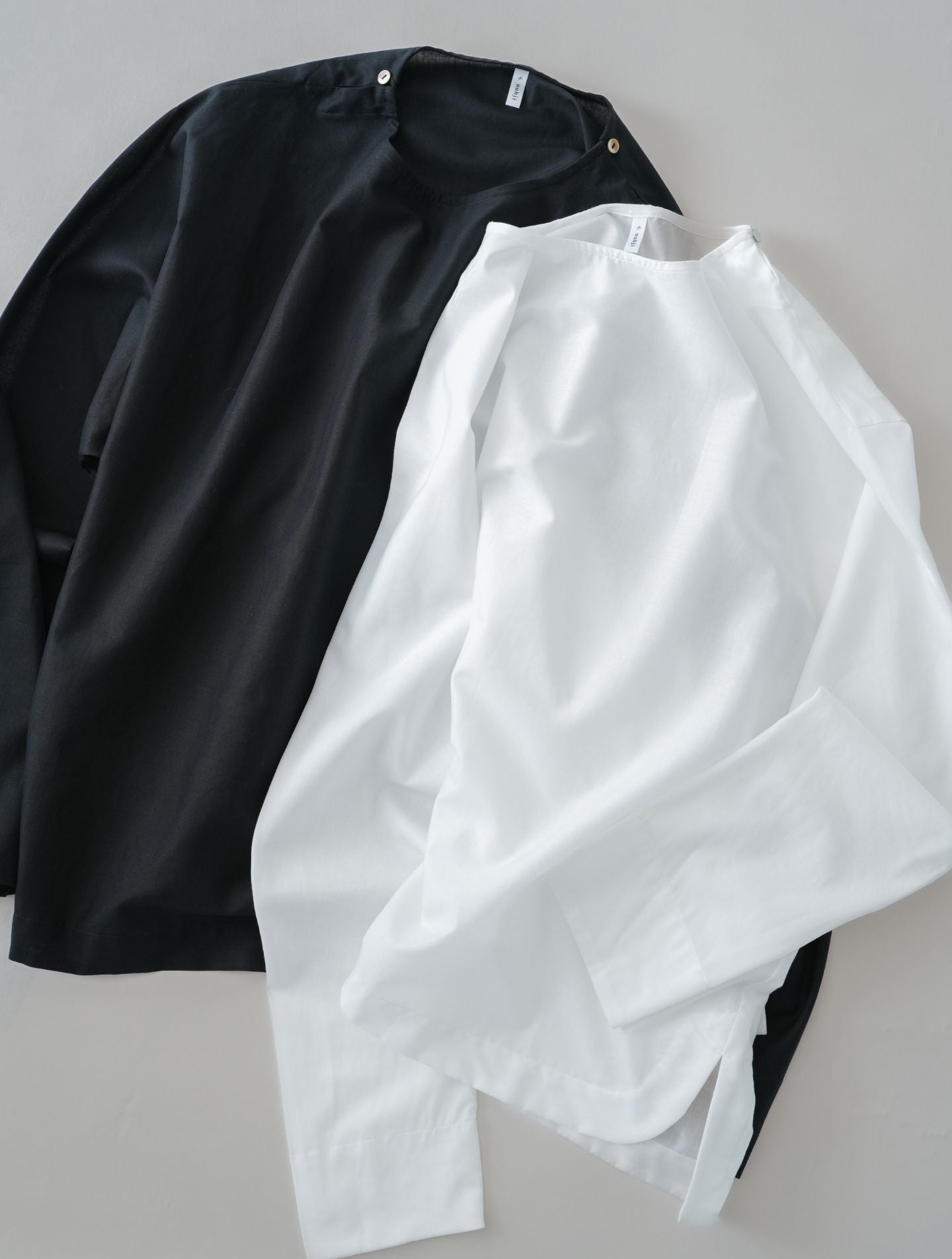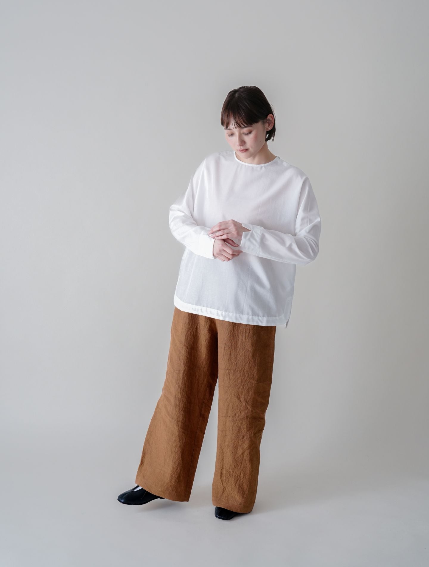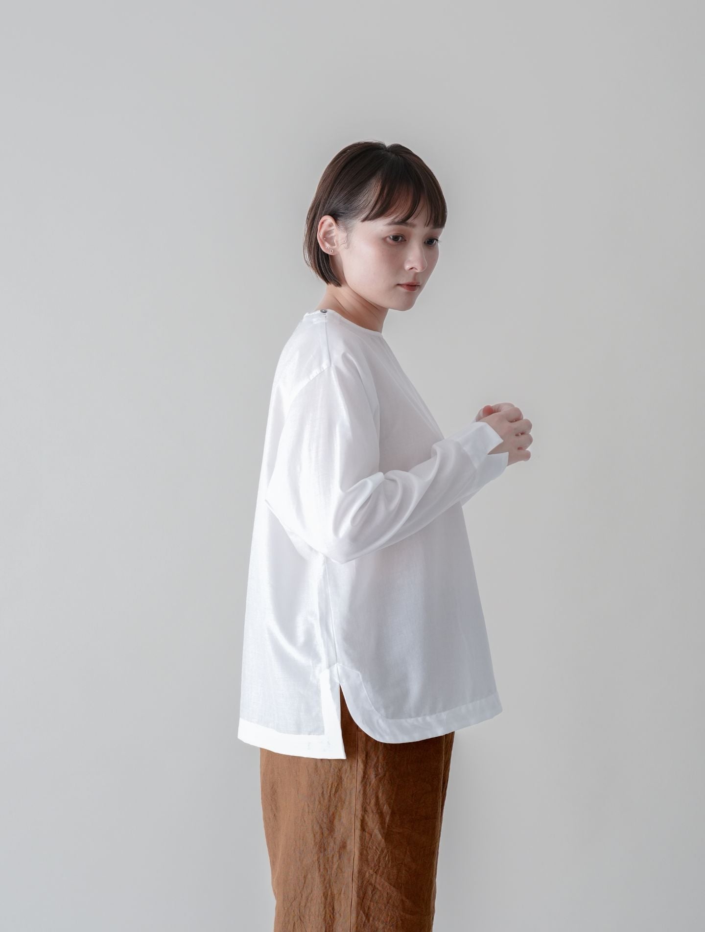 ハウェラ │ 綿ローン 長袖長丈ラウンドネック プルオーバーブラウス